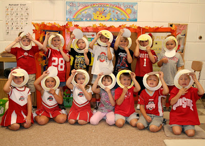 Oh that is so cute!! Hope you have a great year teaching. I love all the little Ohio State outfits! Are they fans or what? Wish we were ALL getting together tonight instead of just the guys! Miss you!